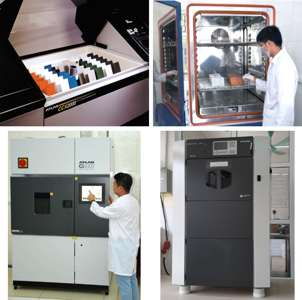 + Về năng lực thử nghiệm độ bền thời tiết của màng sơn: Để đánh giá độ bền thời tiết của màng sơn chúng tôi sử dụng cả hai hình thức thử nghiệm là thử nghiệm tự nhiên và thử nghiệm gia tốc.