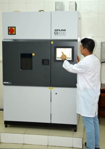 + Các tủ thử nghiệm Xenontest Ci 4000, Xenontest 440 (Atlas, Mỹ) dùng thử nghiệm độ phai màu, mất màu của vật liệu nhựa có khả năng mô phỏng đầy đủ các bước sóng thuộc dải hẹp (340 nm và 420 nm), dải dài (300 nm – 400 nm), cũng như dải ánh sáng nhìn thấy, có tổng diện tích phơi mẫu lớn (6,500 cm đối với Ci 4000 và 2310 cm Xenontest 440), chế độ kiểm soát nhiệt độ theo tấm đen, tấm đen chuẩn, kiểm soát độ ẩm cùng dải tiêu chuẩn thử nghiệm rộng đảm bảo đáp ứng tốt các yêu cầu thử nghiệm.