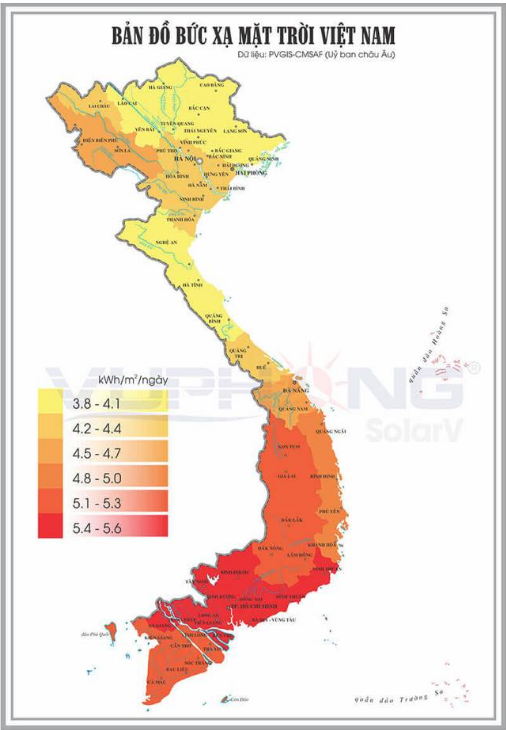 Bản đồ bức xạ mặt trời Việt Nam